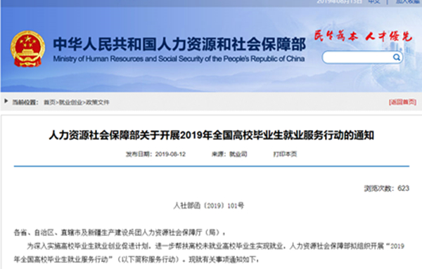 据人力资源和社会保障部官方网站消息,8月10日至9月20日,人社部组织开展“2019年全国高校毕业生就业服务行动”(下称服务行动),明确各地要对未就业高校毕业生组织不少于2场专场招聘,提供不少于3次有针对性的岗位推介。