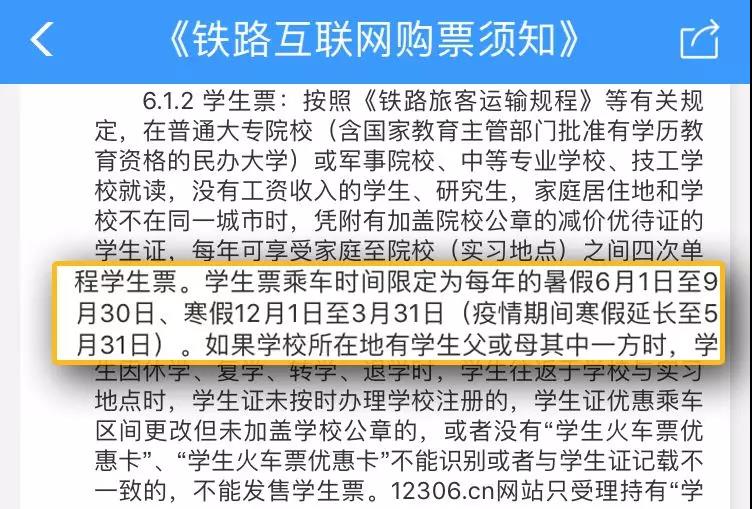 学生票乘车时间为:寒假12月1日-5月31日(疫情期间),暑假6月1日-9月30日。