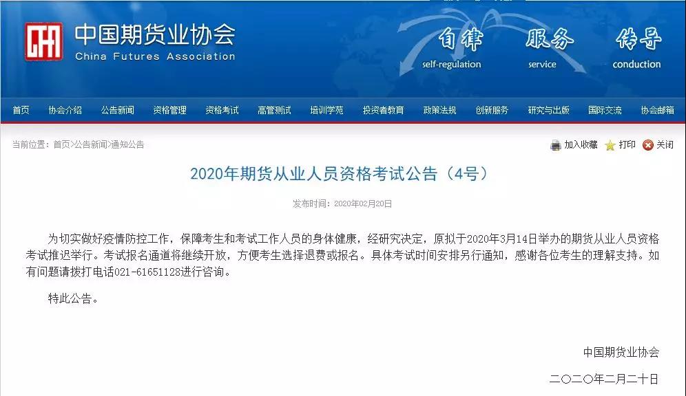 2020年3月基金从业资格考试及4月全国统考报名推迟
